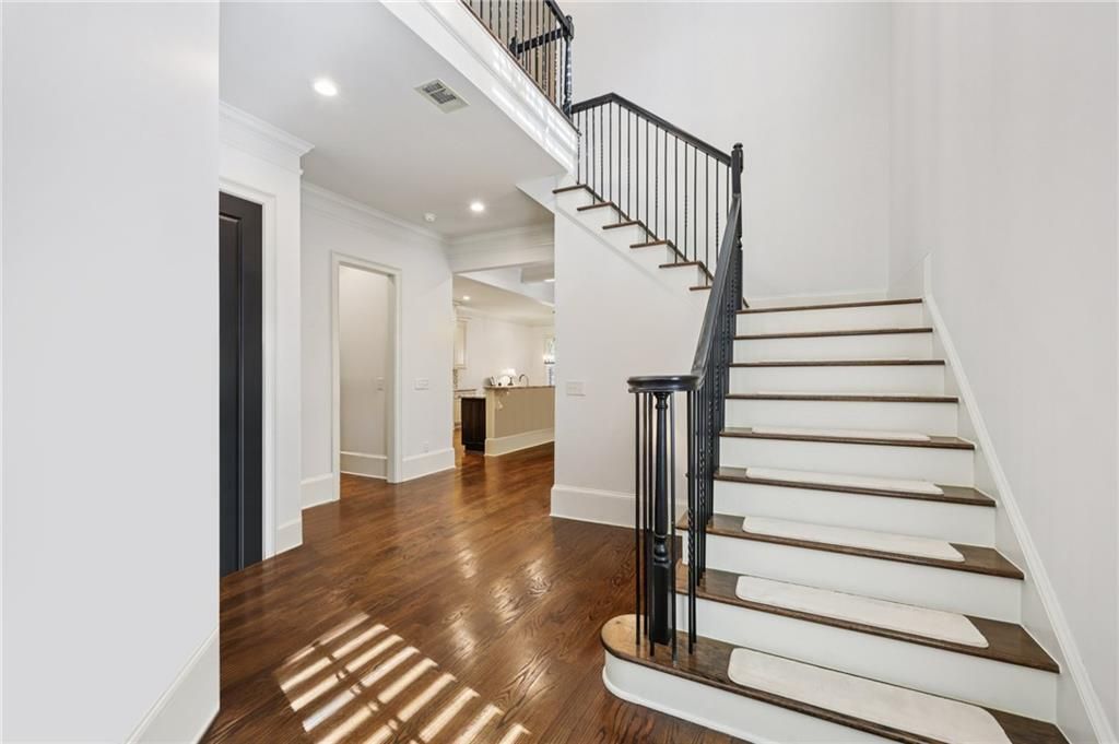 Experience the essence of luxury living in this stunning end unit townhome, nestled within the prestigious and gated community of Ellard, situated alongside the picturesque Chattahoochee River. This elevator ready property exudes elegance and sophistication with hardwood floors throughout main level and upstairs hallway, Gourmet kitchen with high-end new Bosch range, California closets in all bedrooms, new garage door opener with camera (can open & close using app), new garbage disposal, new Lenox HVAC unit upstairs, New windows upstairs and downstairs. Newly painted garage doors, shutters, and trim in front, side, and back of house. Spectacular lighting and 10-foot coffered ceilings on the main floor. Spacious primary suite with en-suite bathroom featuring separate tub and shower. Custom-built closet in primary suite as well as the other two additional bedrooms, one with private bathroom and balcony. All rooms located on the top floor. Convenient walk-in laundry room, 2-car garage with ample storage space including overhead metal racking system. Miles of outdoor space within the community, including a Resort-style pool, Tennis and Pickle-ball courts, State-of-the-art exercise facility, Nature walking trails, Playground, Basketball courts, Lush green spaces along the Chattahoochee River. Close proximity to shopping, schools, and restaurants. Easy access to GA 400, I-85, I-285, and metro Atlanta. This private and prestigious community is staffed with 24/7 security for your peace of mind. Don't miss this incredible opportunity to own this piece of luxury in one of Atlanta's most sought-after communities!