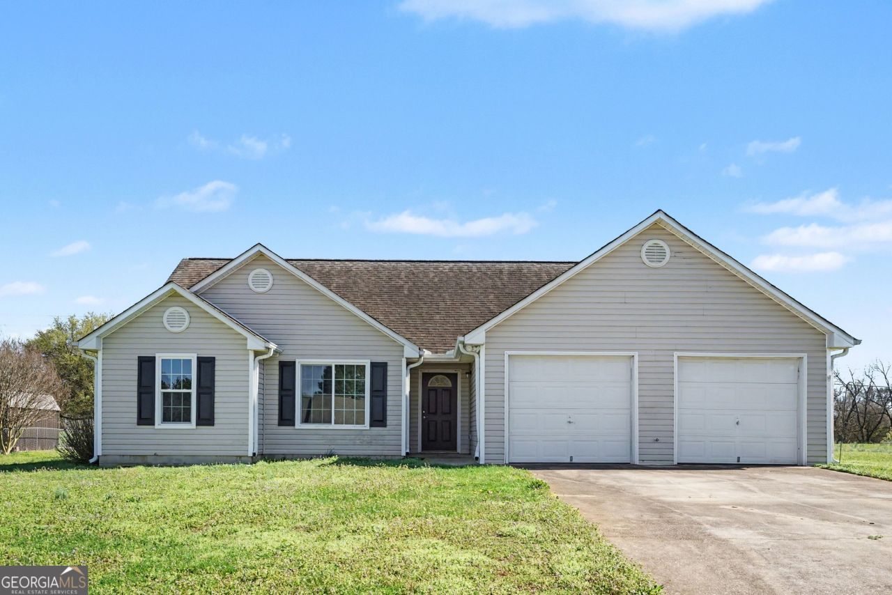 Welcome home to this charming 3-bedroom, 2-bathroom ranch, perfectly situated on a spacious 1/2-acre lot in a quiet, rural neighborhood that offers peaceful living without sacrificing convenience. Step inside to an inviting vaulted family room, complete with a cozy fireplace that anchors the space and creates a warm, welcoming atmosphere. The nearby kitchen features stained cabinetry, ample counter space, and an eat-in dining area overlooking the backyard-perfect for casual meals or morning coffee. The split-bedroom floor plan ensures added privacy, with the primary suite tucked away on its own wing. The primary bedroom features a tray ceiling, a large walk-in closet, and an ensuite bath offering a double vanity, separate soaking tub, and stand-alone shower. Two additional secondary bedrooms on the opposite side of the home share a full bath, making this layout ideal for families, guests, or a home office setup. Step outside to the patio, where you can enjoy quiet evenings, weekend grilling, or simply take in the peaceful surroundings of your expansive lot. There's plenty of room for outdoor entertaining, gardening, or play structures-whatever suits your lifestyle. Located just a short drive from local shopping, dining, and schools, this home provides the best of both worlds: the tranquility of country living with the convenience of modern amenities only minutes away. Don't miss out, schedule your showing today!