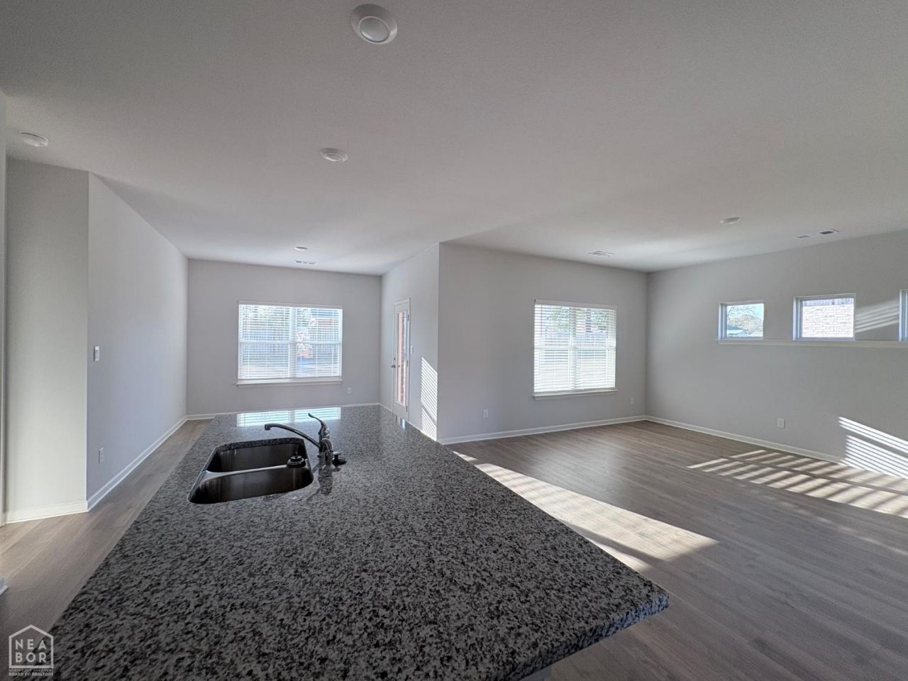 Move-in ready! The appealing one-story home includes many contemporary features, and an open-concept design, enhancing the wonderful feel of this home. The kitchen includes a large island perfect for bar-style eating or entertaining, a walk-in pantry, and plenty of cabinets and counter space. The dining room and living room both overlook the covered porch, which is a great area for relaxing and dining al fresco. The large Bedroom One, located at the back of the home for privacy, can comfortably fit a king size bed, and includes an en suite bathroom with double vanity, big walk-in closet, and separate linen closet. Two other bedrooms share a second bathroom. The two-car garage connects to the front hallway where the laundry room and an extra storage closet. More Home Features: Granite Countertops, Comes with all appliances, Gutters, Blinds, Laminate Plank Flooring, Walk in Shower.