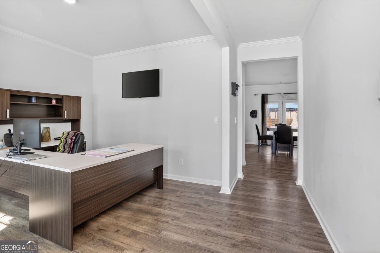 Welcome to Oakhurst Glen in Fairburn, where comfort meets community. This beautifully maintained Penwell floor plan is truly move-in ready and feels barely lived in. Featuring 3 bedrooms, 2.5 baths, a front flex room perfect for a home office, and a spacious upstairs loft, this home offers both functionality and flow. The kitchen shines with granite countertops, subway tile backsplash, stainless steel appliances, and detailed crown molding cabinetry, all overlooking a cozy family room with fireplace. Upstairs, the oversized primary suite is a retreat of its own with a tile shower and separate soaking tub. Located in a premier swim & tennis community in one of Fairburn's fastest-growing areas, this one is ready for its next chapter and new owner.