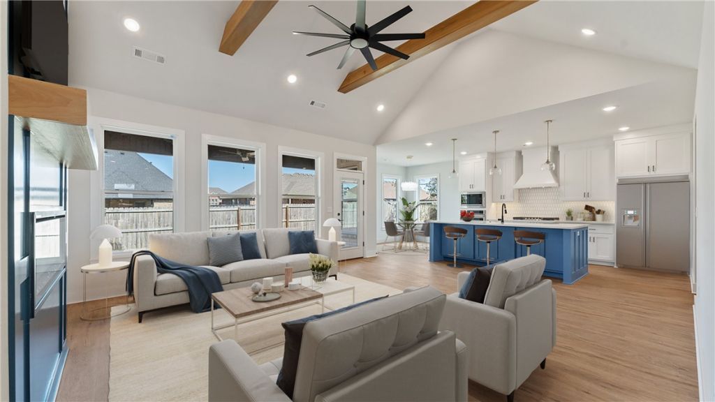 This gorgeous home sits right across from Gamble Elementary, and it's got a layout that just makes sense. On the main floor, you'll find two bedrooms and two full baths, and upstairs there are two more bedrooms, another full bath, plus a big theater/game room that's perfect for movie nights or hanging out. It's loaded with thoughtful upgrades ? tall ceilings with beautiful banister railings, quartz countertops, tiled showers, an electric fireplace, and even a gas line ready for your outdoor grill. The kitchen is a dream with custom cabinets, a huge walk-in pantry, and luxury vinyl floors all through the first level. The garage even has a charging port for your electric car. And with Gamble Elementary and Bentonville West High School just a short walk away ? plus quick I-49 access ? you're only minutes from downtown Bentonville and the Walmart Home Office.