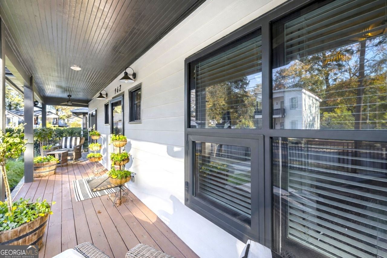 If your dream home includes a picture-perfect front porch, magazine-worthy interiors, and a backyard big enough for every kind of gathering, you are going to fall HARD for this one! Welcome to 962 Ashby Circle, just steps from the Westside Beltline Trail. Custom-designed and rebuilt from the studs in 2022 by the current owner with designer finishes and curated details throughout, this home delivers an ideal blend of style, function, and modern living in one of Atlanta's fastest-growing areas! A wide front porch sets the tone, offering the perfect spot for morning coffee. Inside, a vaulted living room with a dramatic chandelier anchors the open-concept layout. The flow is effortless, from living to dining to kitchen, making the home feel airy, bright, and perfect for entertaining! The chef's kitchen is a true showpiece, featuring brick accent walls, an oversized island, leathered granite counters, custom pendants, premium appliances, soft close cabinetry, and a charming circular window over the modern farmhouse sink. A built-in banquette creates a cozy dining nook with addition room for larger dinner gatherings! The primary suite is giving boutique hotel feels with its spa-inspired bathroom: a soaking tub, walk-in shower, double vanities, warm modern lighting and walk in closet. Two additional bedrooms are generously sized, one currently used as a den/home office, highlighted by a beautifully designed guest bathroom with walk in glass and tiled shower. Step outside and discover one of the home's best surprises, an expansive elevated deck perfect for grilling, lounging, or gathering around the fire table. The deep, grassy, fully fenced backyard offers endless possibilities: play, pets, gardening, or future expansion - R5 zoning, maybe an ADU is in your future! Additional features include hardwood floors throughout, designer lighting, custom tilework, ample storage, and off-street, gated parking. Furnishings are also negotiable, making it an excellent turn-key opportunity for primary residents, second-home buyers, or investors seeking short-term or mid-term rental potential near booming Downtown Atlanta and the 2026 World Cup venues! Location perks - just steps to the Ashby Circle Playlot, the Beltline Westside Trail, Washington Park, MARTA Ashby, Kipp Ways Academy & more! Minutes to Westside Park, Atlanta University Center, Mercedes Benz Stadium, and all of Atlanta's rapidly growing westside corridor. This is the one!