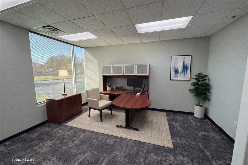 All-Inclusive Executive Office in Professional Corporate Suite Stop working from home and move into a high-end professional environment. Located within the pristine headquarters of Top Tech, this private 225 SF executive office is a true plug-and-play setup. One flat monthly rent of $1,000 covers everything: all utilities, high-speed internet, a VoIP phone line, and use of professional-grade copy/print equipment. The office comes furnished with an executive desk and features a large window with natural light. Tenants enjoy full access to a large modern conference room available by reservation, a professional lobby for greeting guests, and a fully equipped breakroom. Ideally located in Cobb Place near I-75 and Cobb Parkway, minutes from Kennesaw State University and local dining. A second 210 SF office is also available for lease in the same suite.