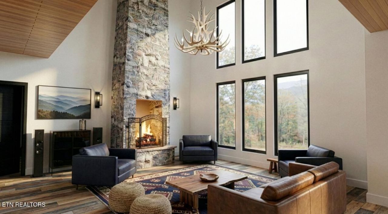 Rooted in nature, elevated by design.Nestled within the rolling landscape of English Mountain, The Bitter Root captures the essence of Smoky Mountain living with 2,427 square feet of refined craftsmanship and timeless comfort. This thoughtfully designed three-bedroom, two-and-a-half-bath retreat blends open, light-filled spaces with carefully curated details that celebrate the beauty and tranquility of mountain life.The main level features a cathedral-ceiling primary suite, creating a peaceful sanctuary framed by expansive windows that invite natural light and serene forest views. The spa-inspired en suite bath showcases beautifully curated matte black plumbing fixtures, a freestanding soaking tub, and a fully tiled walk-in shower -- striking the perfect balance between rustic warmth and modern sophistication.At the heart of the home, the open-concept great room is defined by a soaring vaulted ceiling and a dramatic floor-to-ceiling stone fireplace, flowing effortlessly into a chef's kitchen designed for both everyday living and entertaining. The kitchen features quartz countertops, GE Café appliances, solid wood cabinetry, and a spacious walk-in pantry, complemented by warm solid hickory flooring, custom trim work, and designer lighting throughout.Outdoor living is just as inviting, with a gracious screened porch and charming loft above, offering the perfect setting for morning coffee, relaxed evenings by the fire, or simply enjoying the fresh mountain air and surrounding views.Each residence at Moody Moon Ridge rests on an expansive 5+ acre private homesite, providing exceptional privacy and a rare connection to nature. Planned community amenities -- including an open-air pool, fitness studio, organic garden, and farm-to-table gathering spaces -- are designed to foster connection, relaxation, and the slower pace of authentic mountain living.Ideally positioned between Knoxville, Gatlinburg, and Asheville, Moody Moon Ridge offers convenient access to the very best of the Smoky Mountains -- from scenic hiking trails and Douglas Lake to boutique shopping, vibrant arts, and exceptional dining.Whether as a private mountain retreat, full-time residence, or luxury short-term rental, The Bitter Root offers a rare opportunity to experience craftsmanship, comfort, and the quiet beauty of English Mountain.