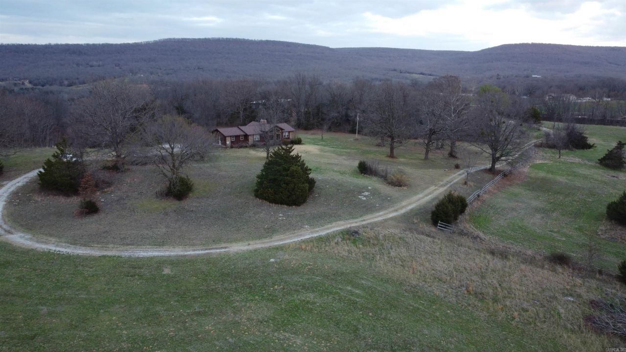 Ozark Mountain Views with a 3,014 SQFT home on 80 acres with 20 acres of prime hay-field pasture!! This 4BR-3BA home features a newly updated full basement, floor-to-ceiling living room windows, beautiful brick fireplace with wood stove insert, spacious screened in porch, efficiently designed galley kitchen, cathedral ceilings, walk-in closets, and wood stove in the basement. The 80 acres features 2 fenced pasture areas, two ponds in the woods, and a large machine shed. Deer, bear, turkey, and elk have been seen on the property. Excellent hunting, seasonal creek, rolling topography, private location, and all home appliances and gun safe convey. Approximately 25 minutes into Harrison.