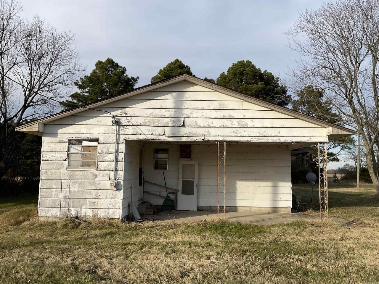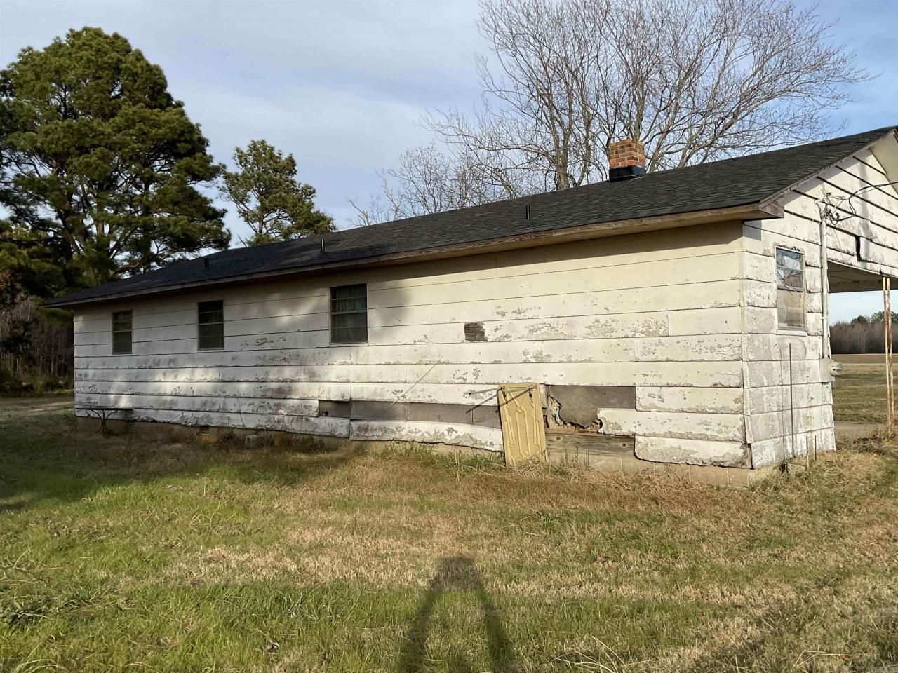 Seller says offer "as-is". Dwelling roof covering has been replaced, rural location has septic tank, farm fields surround this rural location, neighbors a mile away. Dwelling has not been updated, exterior siding displays decay, wood heat currently in the kitchen.